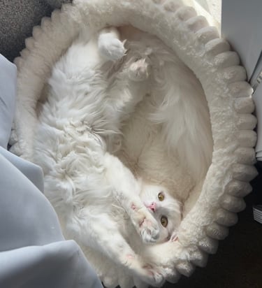 When I'm not writing, I'm spending time with my son my cat, Winston. He has kept me company during my time at college, and I love him more than words allow.